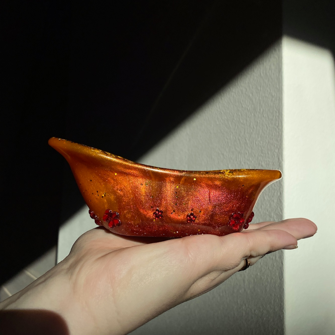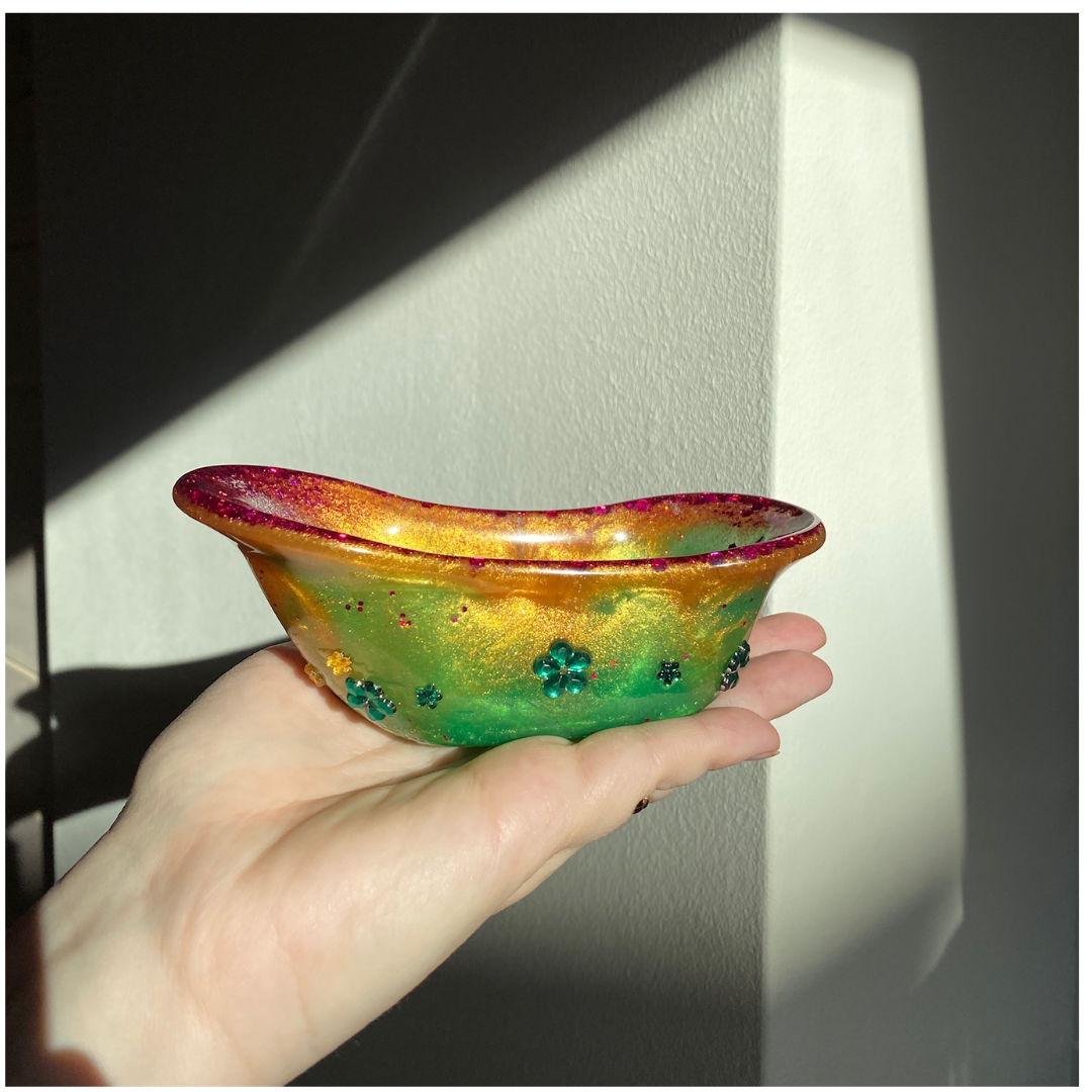 Epoksiidvaigust vann jalgadega. Vanni mõõdud: 14,5 x 6,5 x 7,5 cm. Kerge.