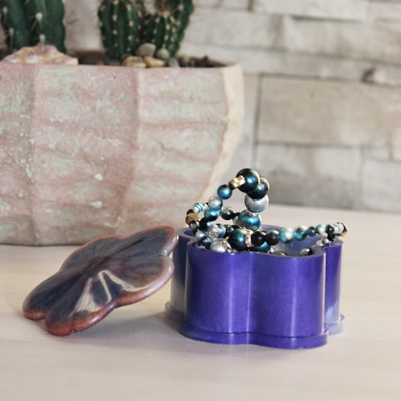 Epoksiidvaigust väike ruudu kujuline ehtekarp kaanega. Läbimõõt 5-6 cm. Kerge. Pilt on illustratiivne.